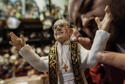 Crib figurines’ artist Genny Di Virgilio works on a figurine depicting Pope Francis, the day after he was elected on March 14, 2013 in Naples. Pope Francis received a flood of goodwill messages from around the world Thursday with non-Catholics hoping his papacy will usher in better ties with the Vatican. AFP PHOTO / STR (Photo credit should read STR/AFP/Getty Images)