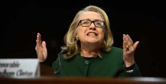 US Secretary of State Hillary Clinton testifies before the Senate Foreign Relations Committee on the September 11, 2012 attack on the US mission in Benghazi, Libya, during a hearing on Capitol Hill in Washington, DC, on January 23, 2013. Secy. Clinton warned of the challenges posed by rising militancy after the Arab Spring as she appeared before US lawmakers Wednesday to be grilled about a deadly attack. “Benghazi didn’t happen in a vacuum,” Clinton said at the start of a Senate hearing into the September 11 assault on a US mission in eastern Libya. AFP PHOTO / Saul LOEB (Photo credit should read SAUL LOEB/AFP/Getty Images)