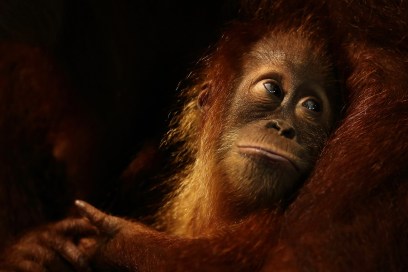 SINGAPORE – JUNE 27: A baby orangutan is seen during the zoo birthday bash celebration at the Singapore Zoo on June 27, 2013 in Singapore. Home to more than 2,800 animal specimens from over 300 species, 26% of which are threatened, the zoo has attained a strong reputation internationally for its conservation initiatives and breeding programmes. The zoo celebrates its 40th anniversary today. (Photo by Suhaimi Abdullah/Getty Images)