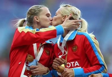 MOSCOW, RUSSIA – AUGUST 17: on the podium during the medal ceremony for the Women’s 4×400 metres Relay during Day Eight of the 14th IAAF World Athletics Championships Moscow 2013 at Luzhniki Stadium on August 17, 2013 in Moscow, Russia. (Photo by Paul Gilham/Getty Images)