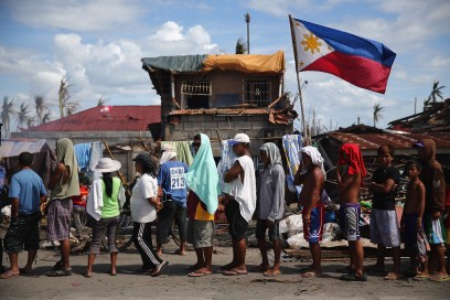 <> on November 19, 2013 in Leyte, Philippines. Typhoon Haiyan which ripped through Philippines over a week ago has been described as on of the most powerful typhoons ever to hit land, leaving thousands dead and hundreds of thousands homeless. Countries all over the world have pledged relief aid to help support those affected by the typhoon however damage to the airport and roads have made moving the aid into the most affected areas very difficult. With dead bodies left out in the open air and very limited food, water and shelter, health concerns are growing.