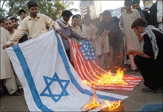 The only word for this kind of denial and/or propaganda is pathology. In Pakistan, they’re burning American and Israeli flags. Yep: we did it. Of course.