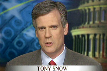 The fact that Tony has criticized the President in print helps Bush much more than it hurts him. Proves he’s reached beyond the Austin circle for some independent advice. Snow doesn’t just tolerate his former colleagues in the press corps; he likes them. He’s smart but not overbearing and speaks with style and a smile. All that should help Bush in the briefing room. Perhaps even better for Bush, Snow is a movement conservative with a real following in the country. The GOP and the President need to pump up enthusiasm at the grassroots before November. Having Snow at the podium and on the airwaves every day should help at the margins.