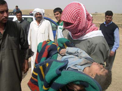 (Photo: courtesy of Raw Story, taken by Agence France Presse. The other photos are far more graphic and disturbing. Do not click on this link if you do not want to see them. My policy is maximum information, within bounds of taste. I published two Danish cartoons; I published Abu Ghraib photos; I linked to the Nick Berg beheading. This photo is reproduced in the same spirit of letting the light in during this war – even into its darkest moments.)