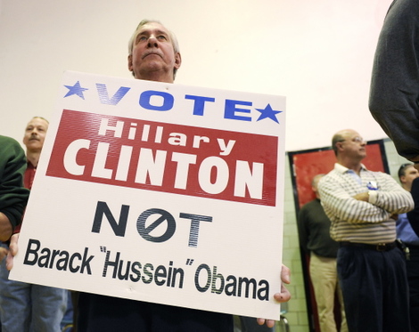 (Photo: a Clinton supporter at a Bill Clinton event in Pitanning, Pennsylvania. By Jeff Swensen/Getty.)