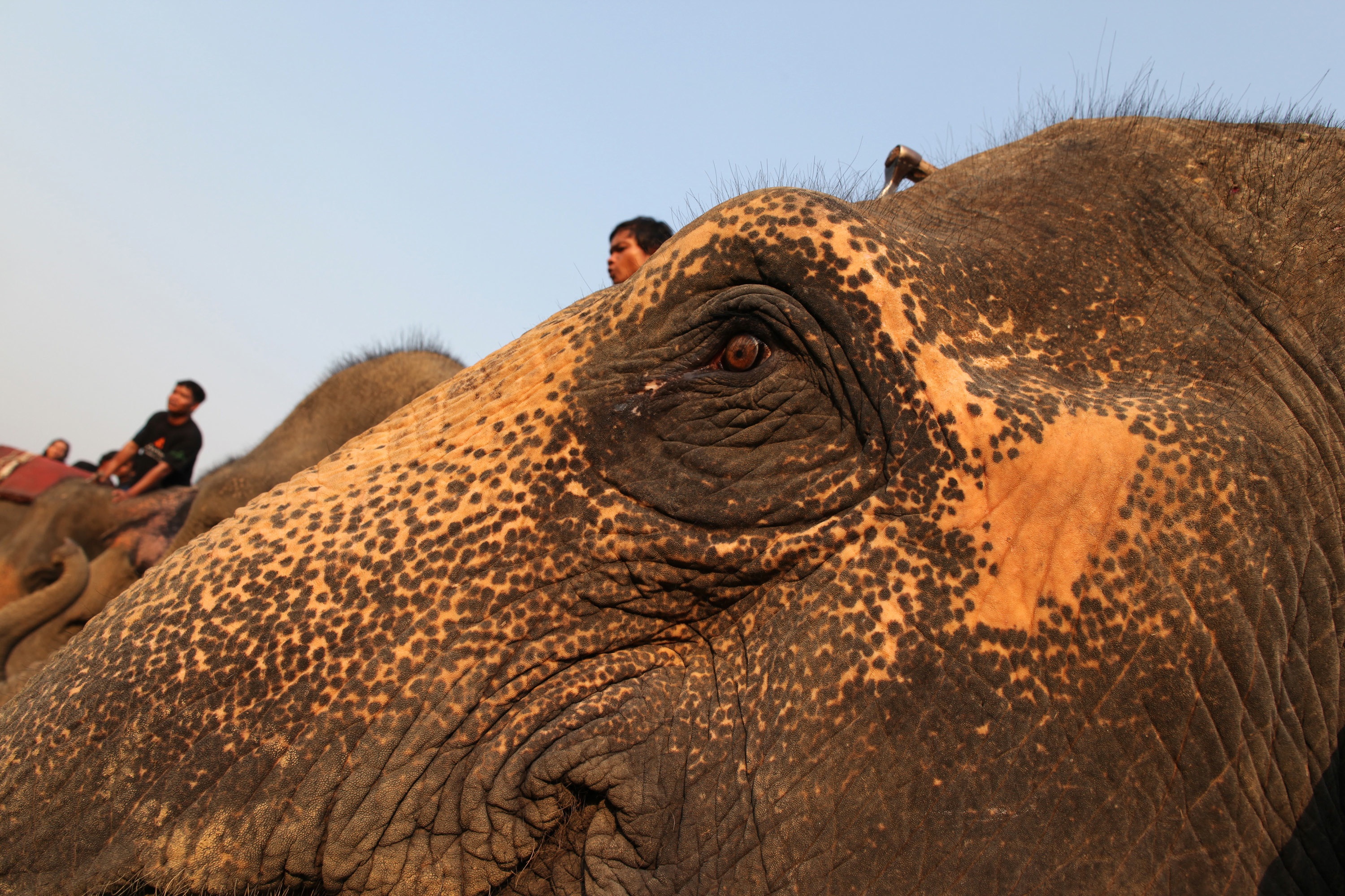 Thai mahouts (elephant drivers) line up their elephants during the finals of the King's Cup Elephant Polo at the Anantara Golden Triangle Resort & Spa March 29, 2009 in Chiang Rai, Thailand. The polo event aims to raise a record 1.5 million Thai baht to fund a project that provides for the welfare of elephants and their mahouts. It is estimated that Thailand's elephant population has dwindled to just over 4,000, with 2,500 domesticated and only 1,500 in the wild. By Paula Bronstein/Getty Images.