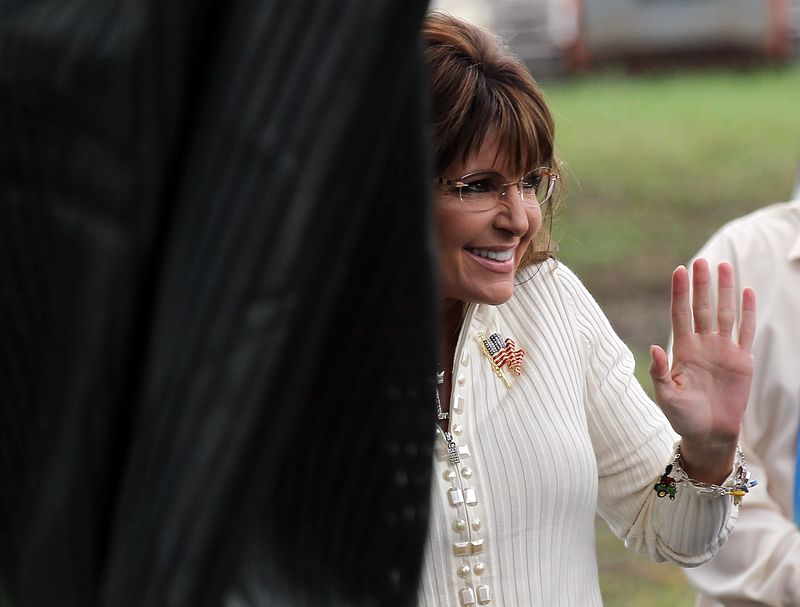 (Photo: Former Alaska governor Sarah Palin peeks from behind a curtain before speaking during the Tea Party of America's 'Restoring America' event at the Indianola Balloon Festival Grounds on September 3, 2011 in Indianola, Iowa. Former Alaska governor Sarah Palin headlined the Tea Party of America's 'Restoring America' event. By Justin Sullivan/Getty Images.)