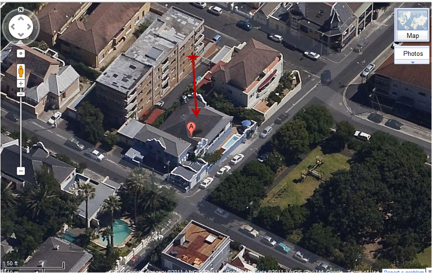 PS: The address where the photo was taken from is 3 Brunswick Ave, Tamboerskloof, Cape Town, South Africa. You can see a 3 or 4 level apartment building on the east side of the street. That's the place.