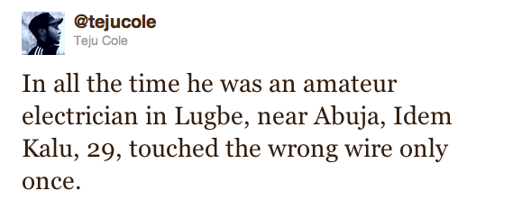 The author Teju Cole, who grew up in Nigeria, uses Twitter to eulogize random citizens, which he calls small fates: