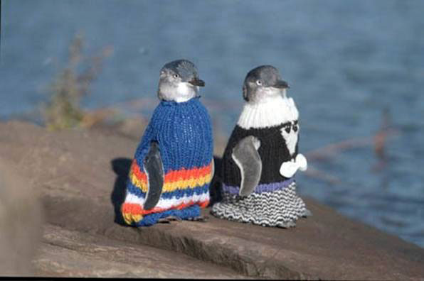 Skeinz, a yarn store in New Zealand, is calling on knitters throughout the world to knit sweaters for the penguins affected by a massive oil spill that occurred earlier this month. The tiny sweaters, while eliciting aww's and squee's, serve a very important function: they prevent the oil-soaked birds from poisoning themselves by preening, as well as keeping them warm before it's their turn to be cleaned up by cleanup workers. And, you know, who doesn't want to save the lives of penguins by dressing them in the most adorable way possible?