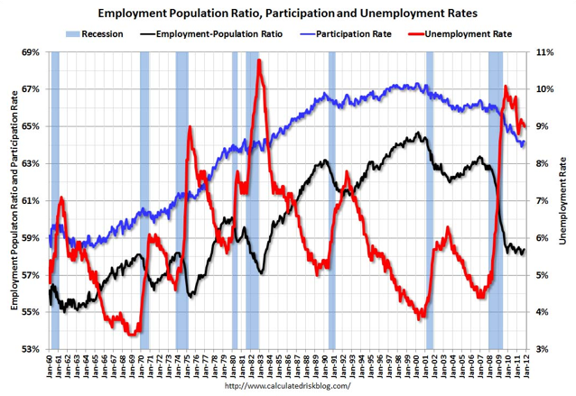 [O]nce we get past the surprise of having the unemployment rate fall below 9%–and it is a measure of just how bad the jobs situation is that a fall below 9% counts as a “surprise”–we are still left with a nasty jobs picture. And that means–among other things–a nasty political picture for President Obama, as he heads into the 2012 election cycle.