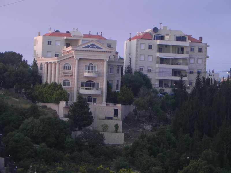 foreground and middle ground and signs of lots more beyond. So far I am thinking this is SE Mediterranean, Turkey maybe but no luck finding a fit. Cars driving on the right and I think the yellow one might be a Mini convertible. Where else but Lebanon then? In fact this is probably not Fatqa, but this photo shows both arabic windows with the right proportions and grille, and white balustrade. So it may be nearby. Or use the same builder!