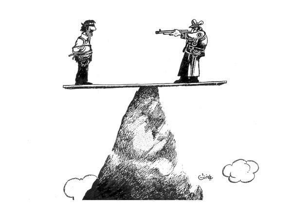 Here's a cartoon from Ali Ferzat, the prominent cartoonist whose hands had been broken in an attempt to silence is pen: