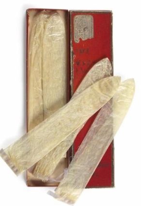 (Image: 110-year-old condoms made from the swim bladders of fish)