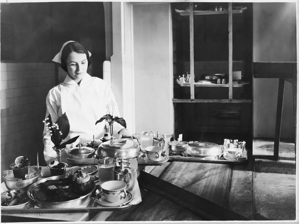A few suggestions raise our eyebrows—frozen clam water, milk with a wee drop of diluted hydrocholoric acid as a treatment for typhoid—but most do not. Shirred egg, broiled fish with a garnish of piped mashed potatoes, egg salad—none of these, I think, would confuse today’s diner. The general principal is to keep the patient well hydrated and unburdened by anything difficult of digestion, such as pork. One little surprise is that our cherished chicken soup comes at the end of "Soups, Broths, and Stews," almost an afterthought. In those days it was no match for beef extract and beef tea, which share a prominent chapter with gruels.