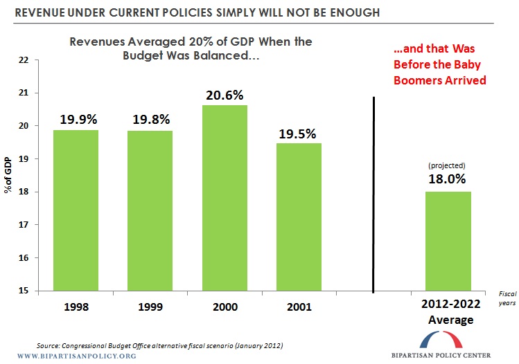 First, our public debt is already at 72 percent of GDP – higher than it has been in over half a century – and projected to increase further. Second, a wave of baby boomers are beginning to descend on the entitlement programs, and supporting them in retirement will require additional spending even if significant reforms are made to control costs. Between these two trends, we will not be able to collect revenues at "normal" levels if we want to have a sustainable budget and a functioning economy.