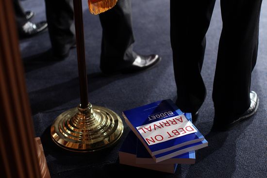 (Photo: Republican members of the U.S. Senate hold a press conference on U.S. President Barack Obama's 2013 budget proposal at the U.S. Capitol February 13, 2012 in Washington, DC. Obama's budget proposes spending of $3.8 trillion in 2013 and requests raising an additional $1.5 trillion over 10 years from the wealthiest taxpayers. By Win McNamee/Getty Images)