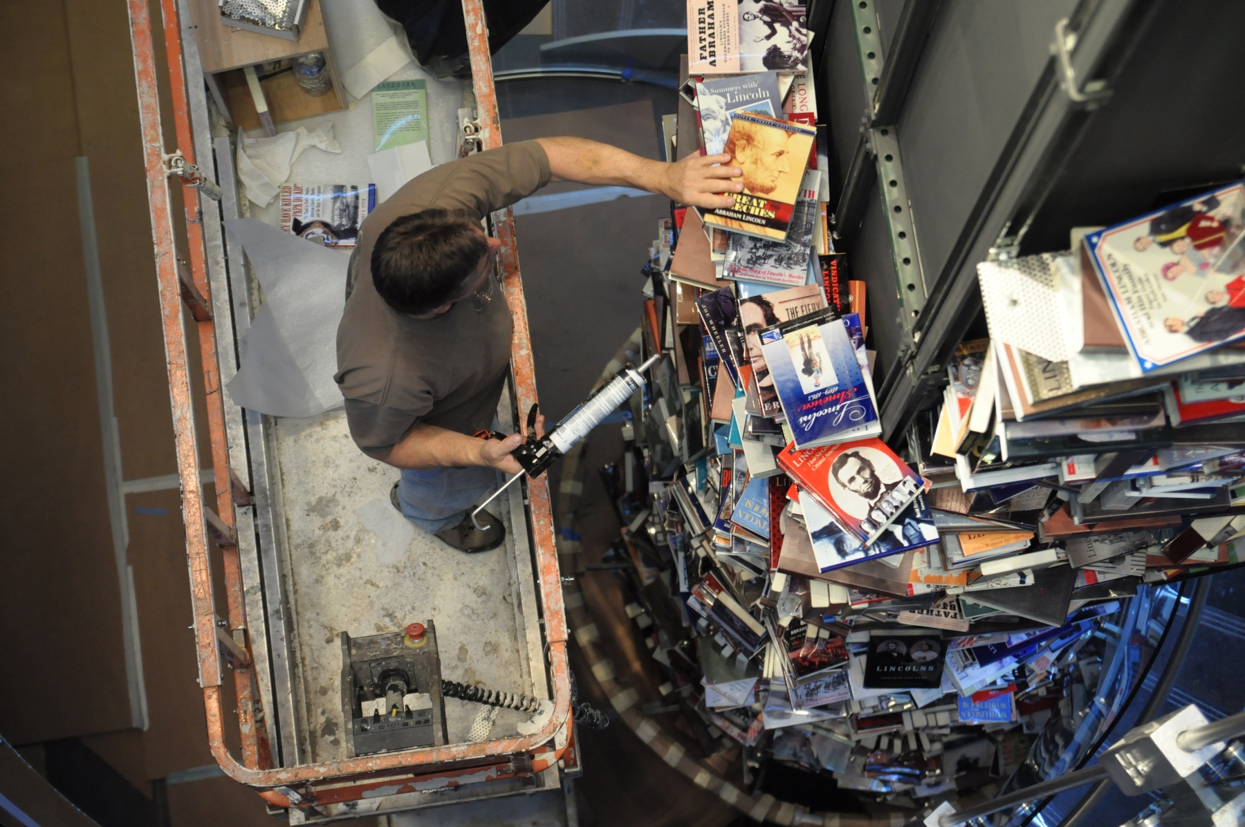 Soon to be on display at the newly-constructed Ford’s Theatre Center for Education and Leadership in Washington, DC, this 34-foot pillar of literature includes over 15,000 unique titles about [Lincoln].