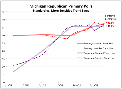The former Pennsylvania senator has significantly outperformed his polling estimates in previous contests, particularly in the Iowa, Colorado and Minnesota caucuses and the non-binding Missouri caucuses. But those contests featured exceptionally low turnouts, allowing Santorum's energized evangelical Christian base to have an outsized and unexpected impact.