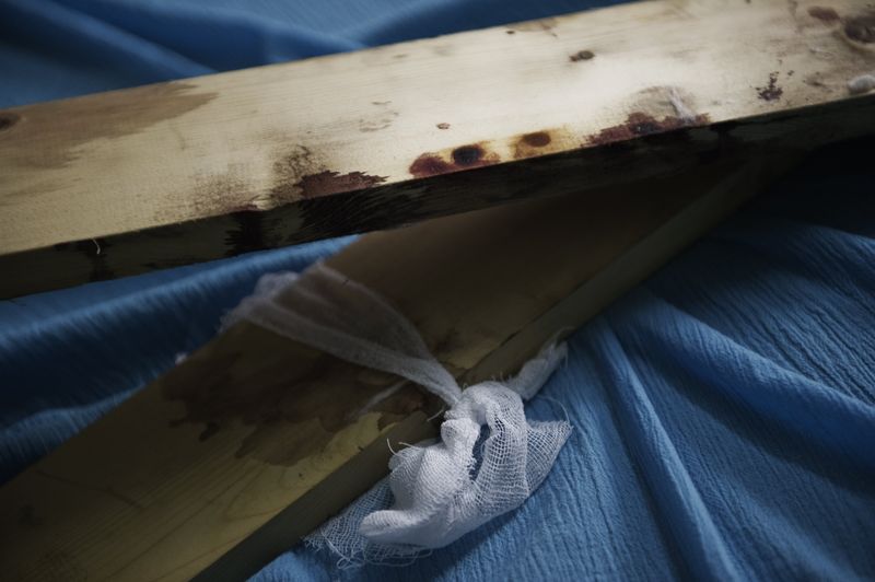 (Photo: Blood stains are seen on wood planks in a makeshift surgery room at a private house being used as a hospital in Qusayr, 15 kms (nine miles) from Homs, on February 27, 2012. The Syrian army shelled Qusayr in an effort to regain control of the town in the mostly rebel-held central province of Homs, an AFP journalist said. By Gianluigi Guercia/AFP/Getty Images)