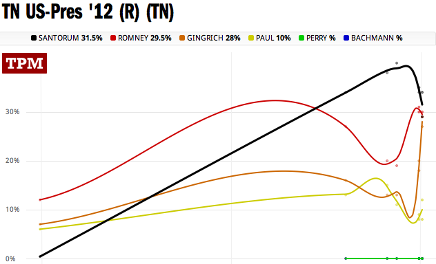 The polling suggests that each of the top three candidates is positioned to claim at least one victory on Tuesday. But if current trends continue, Romney is poised to win the most closely watched race, in Ohio, and he stands a chance of an upset in Tennessee and is best positioned for the most important prize of all: the lion's share of convention delegates.