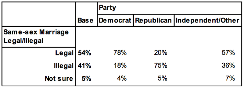 It looks like Maine voters will reverse their 2009 decision and legalize gay marriage in the state this fall. 54% think that gay marriage should be legal to only 41% who think it should be illegal. And when we asked about the issue using the exact language voters will see on the ballot this fall, they say they're inclined to support the referendum by a 47-32 margin.