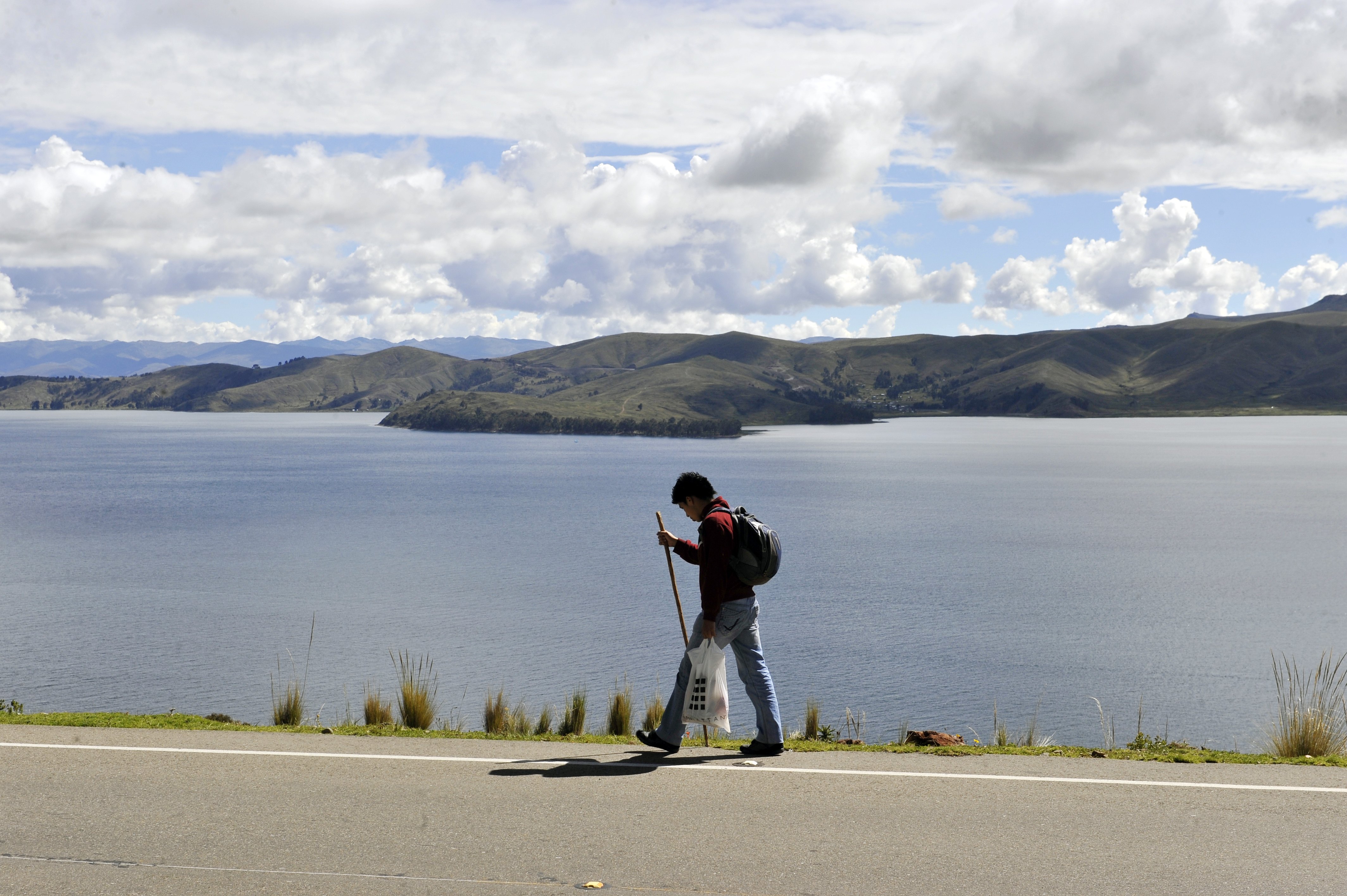 (Photo: A devout pilgrim of the Virgin of Copacabana walks in the road linking La Paz with the virgin's sanctuary, 140 km over the Titicaca Lake, near the border with Peru on April 5, 2012, during Holy Week celebrations. Christian believers around the world mark the Holy Week of Easter in celebration of the crucifixion and resurrection of Jesus Christ. By Aizar Raldes /AFP/Getty Images.)