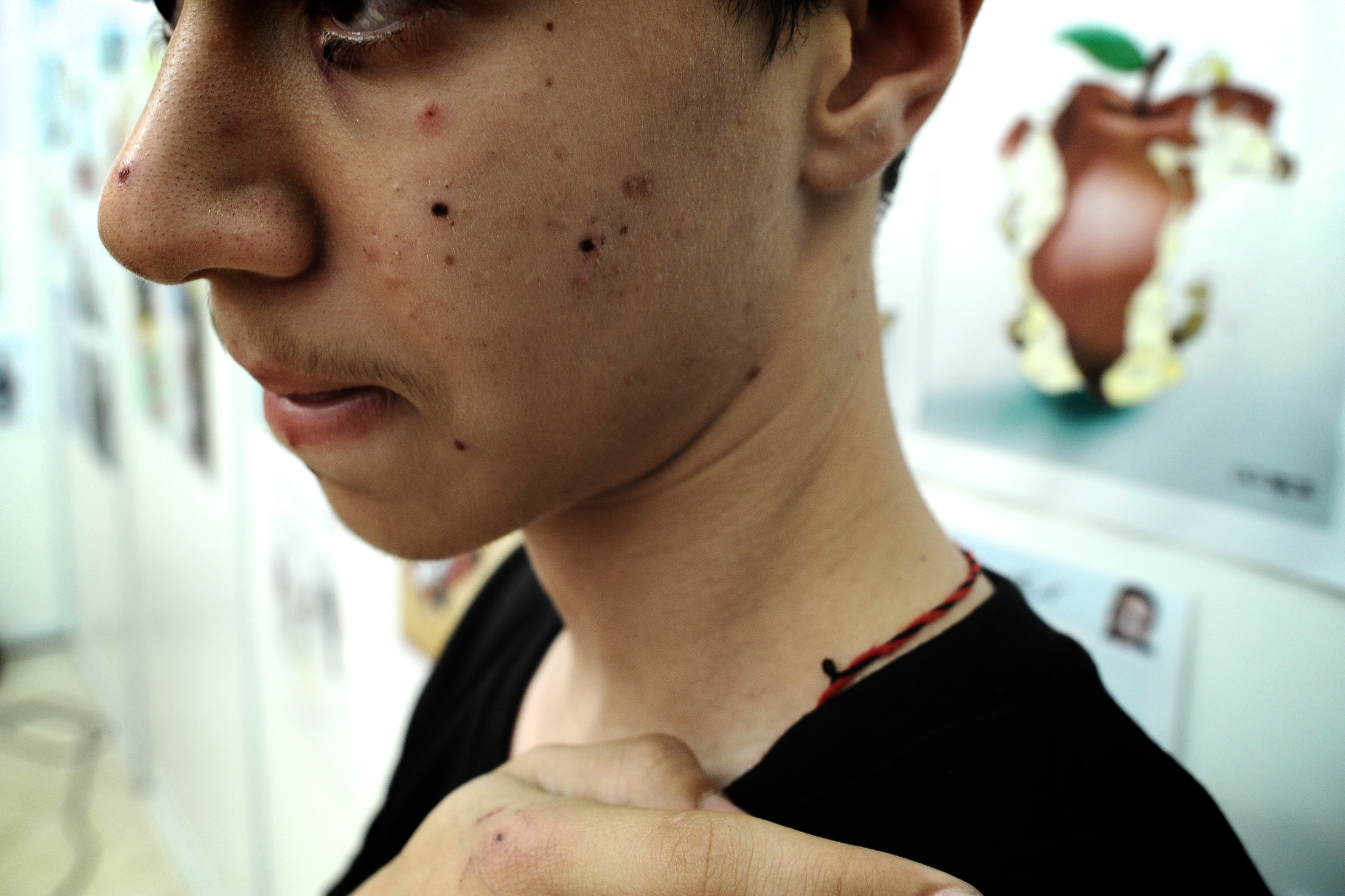 A Bahraini Shiite Muslim shows his face covered in bird shot allegedly sustained during protests, at an Al-Wefaq opposition group press conference in the capital Manama, on April 19, 2012. Shiite-led street demonstrations have turned increasingly violent, as the ruling Sunni Khalifa dynasty continues its crackdown on dissent in a desperate effort to portray that all is well in the island kingdom ahead of the Grand Prix Formula One race which takes place on April 22. By AFP/Getty Images.