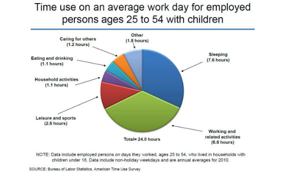 Everything we might prefer to working is crammed into one- or two-hour slices: an hour to eat and drink, an hour devoted to “caring for others.” If you’re an office worker with a few kids, you first must wake up and endure a mad scramble to get everyone dressed and out the door—that’s an hour or two of non-quality family time. Then there’s the commute. If it’s 30 minutes each way, that’s another hour wasted. And then you work for eight or nine hours. If you take an hour for lunch, that’s just another hour that you’re not spending at home with your spouse and kids or at the gym. It’s another hour that you’re paying the sitter. With lunch, an office drone could leave home at 8 a.m. and not get home until 6:30 p.m. When are you supposed to cook dinner? How are you supposed to get to Little League on time?
