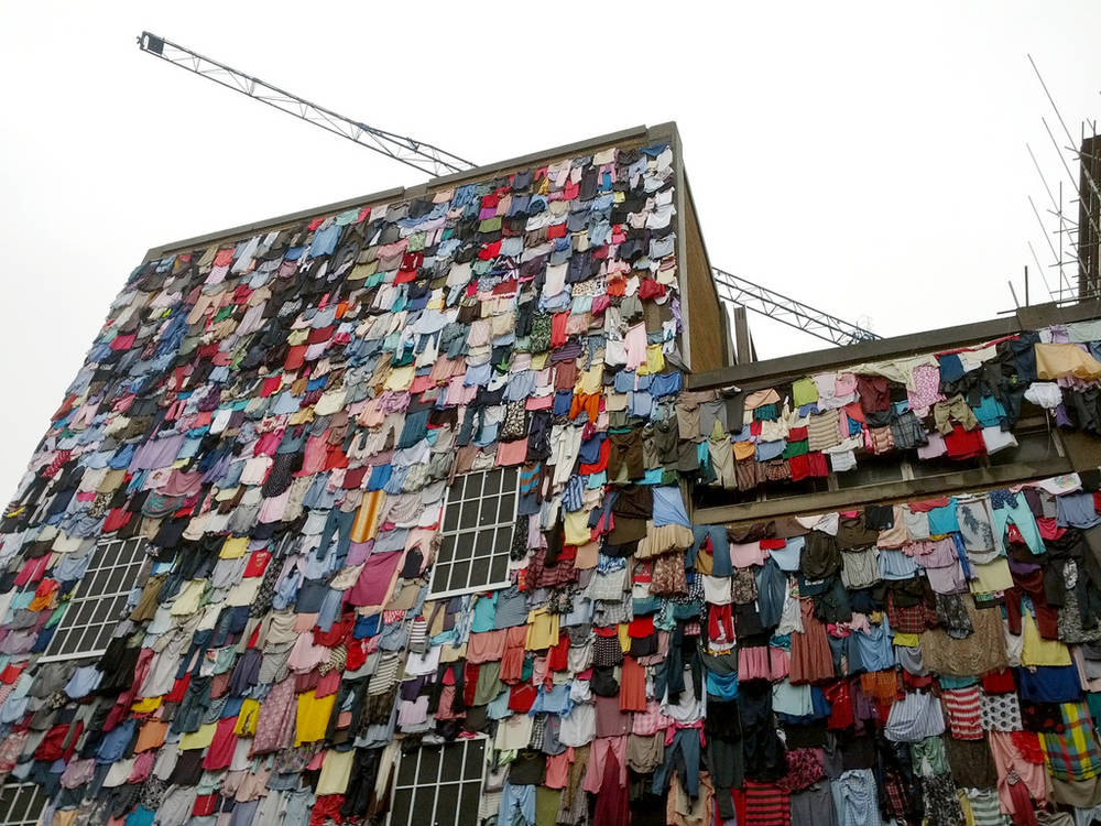 Garments that make it into the Salvation Army thrift stores have exactly one month to sell. Then, they’re pulled from their hangers, tossed in bins, and end up back in a room such as this one. In the rag-cut room, two men were silently pushing T-shirts, dresses, and every other manner of apparel into a compressor that works like the back of a garbage truck, squeezing out neat cubes of rejected clothing that weigh a half ton each. The cubes were then lifted and moved via forklift to the middle of the room, where a wall of wrapped and bound half-ton bales towered. … The Quincy Street Salvation Army builds a completed wall made of 18 tons, or 36 bales, of unwanted clothing every three days. And this is just a small portion of the cast-offs of one single Salvation Army location in one city in the United States.