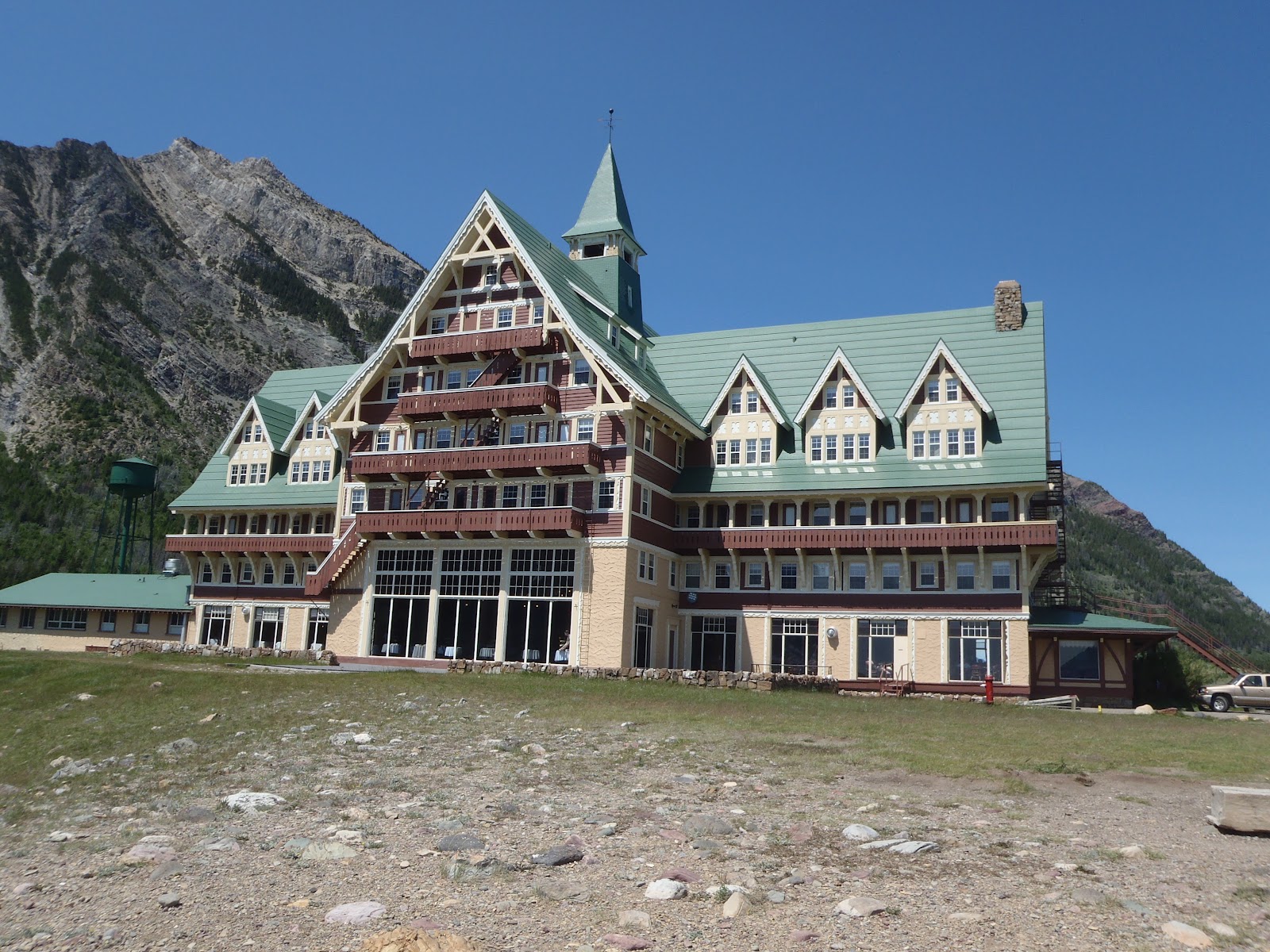 I once hiked 63 miles through Glacier National Park to get to the Prince of Wales Hotel. For the last 20 miles, only the thought of having a cold beer at the Prince of Wales hotel kept me going. By the time I got to Waterton and saw that the hotel was atop a hill, I had no climb left in my legs and opted for a beer at the Grizzly Bear tavern. It had no view, but the beer was cold.