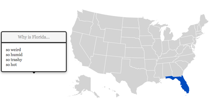 I started wondering, how do Americans really think about "those people" in other states? What are the most common stereotypes? For each of the fifty states and DC, I asked Google: "Why is [State] so" and let it autocomplete.