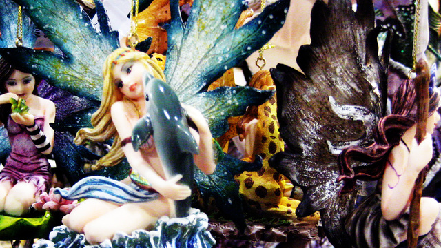 Want a wind chime topped by a giant blue fairy who is hugging a dolphin, a jewelry box emblazoned with a flaming skeleton riding a motorcycle, or a metal sign that says "Man Cave" on it? Got it, got it, and got it. This is where good taste goes to die. This is what impulse buy dreams are made of, and a communist's worst nightmare: A giant room in the middle of Las Vegas in which people buy and sell cheap, poorly made garbage that literally nobody actually needs. And where is most of this stuff made? China.