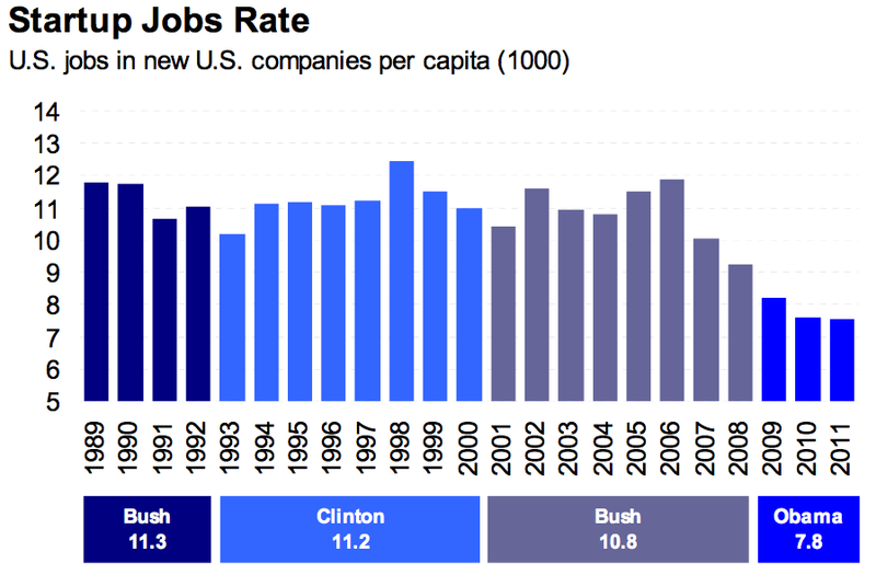 Felix Salmon unravels the findings of a paper (pdf) by Tim Kane on the implosion of startup-driven job creation:
