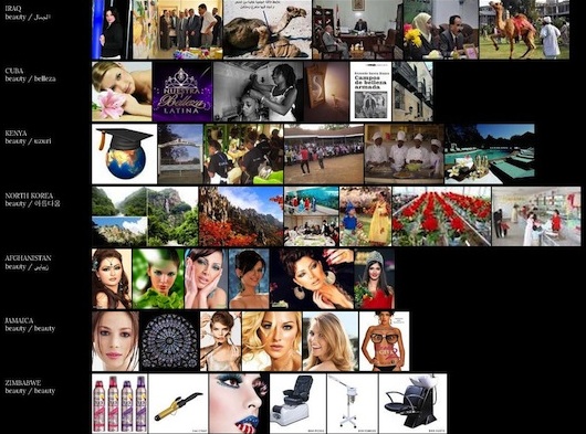 Matthew Bower used Image Atlas, a photo search tool that indexes "top image results for given search terms across local engines throughout the world," to chart how beauty is understood around the world: