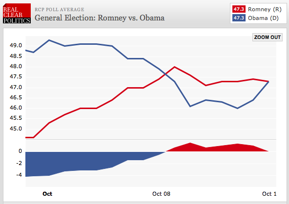 (Chart from RCP, which currently has Romney and Obama tied.)