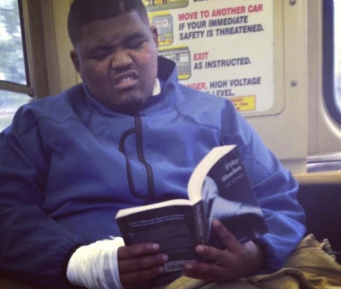 (Photo from a collection of "29 People Caught Reading "Fifty Shades Of Grey" In Public")