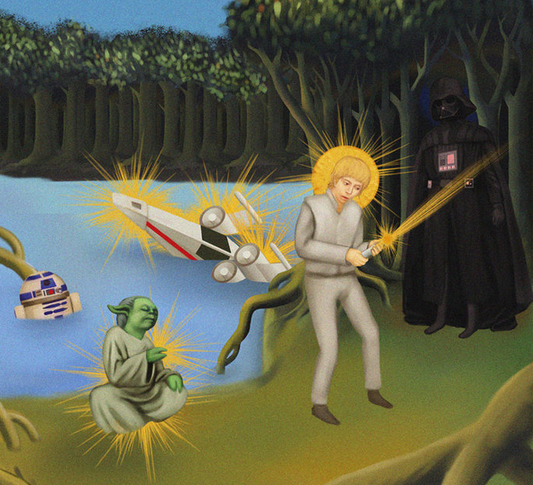 (Partial view of the cast of "Star Wars" as religious icons by Chey Chao via Neatorama)