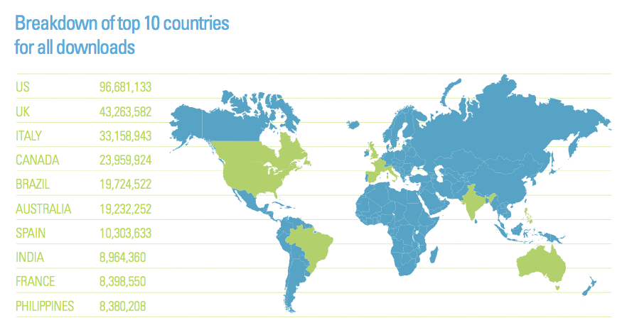 In the first half of 2012 Americans downloaded nearly 760 million songs using the software known as BitTorrent, which is the technology most often used for unauthorized file sharing. And most of those downloads happened in cities and towns near universities, says study co-author Marie-Alicia Chang.