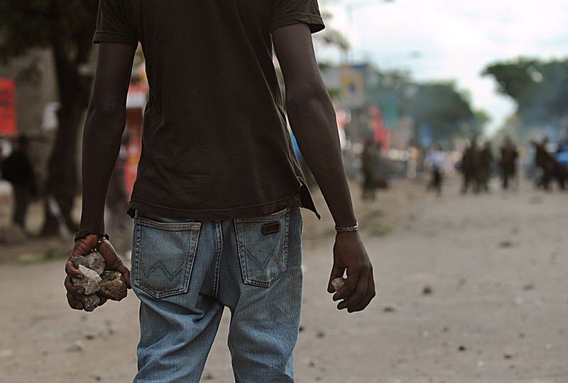 (Photo: A youth of non-Somali ethinicity armed with stones stands on November 19, 2012 during inter-ethnic clashes in Nairobi's Eastleigh suburb. Clashes broke out a day after a bomb exploded in a minibus, blamed on sympathisers of Somalia's Al-Qaeda-linked Shebab insurgents, killing seven people and leaving several wounded. A day after the blast, non-Somali Kenyans turned on Somalis and attacked their shops and stalls, accusing them of being responsible for the bomb. No one has claimed responsibility for the blast. By Tony Karumba/AFP/Getty Images)