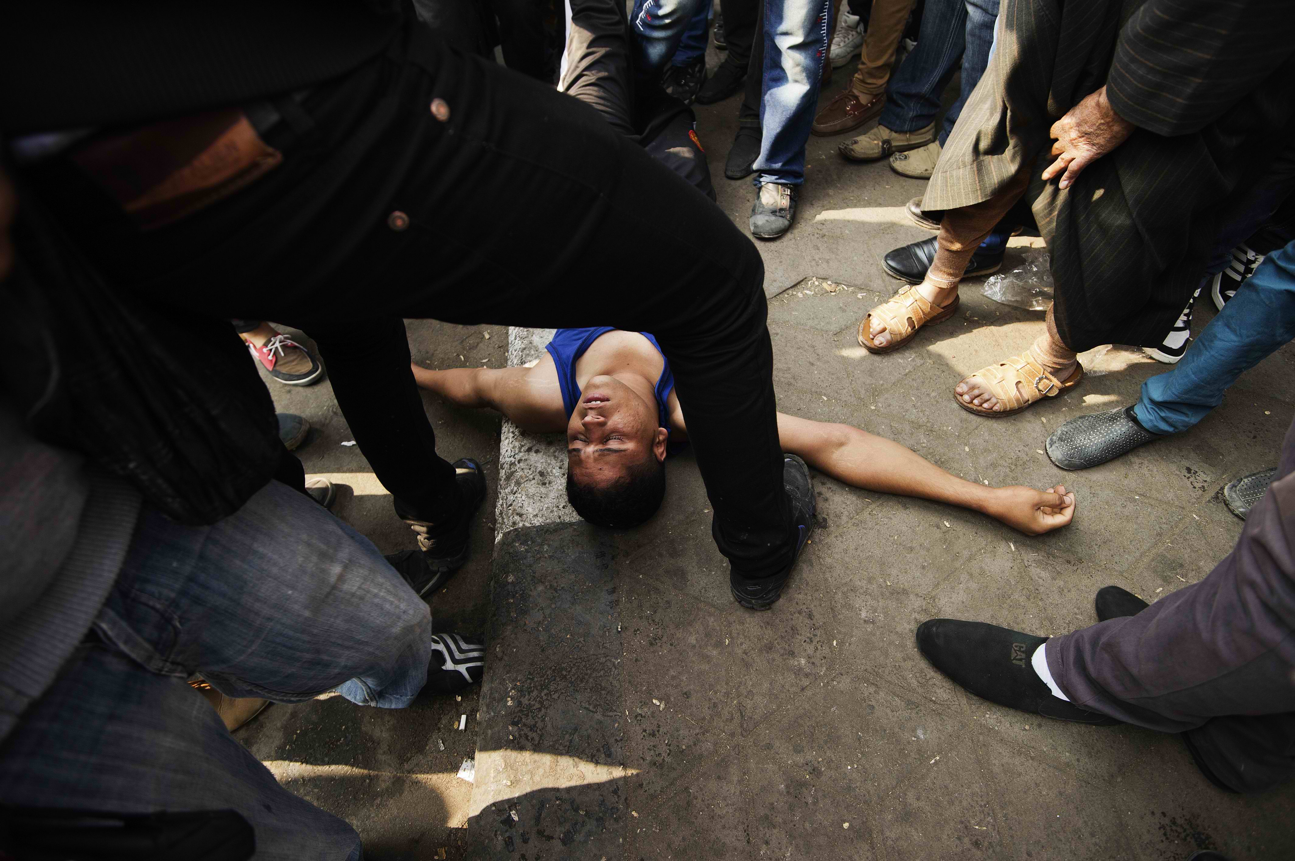 (Photo: An Egyptian protester recovers from tear gas inhalation on November 27, 2012, during clashes with the Egyptian Riot Police in Omar Makram street, off Tahrir Square in Cairo. By Gianluigi Guercia/AFP/Getty)
