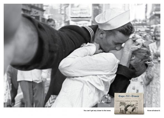 South African paper Cape Times claims that "You can't get closer to the news" in a cheeky new ad campaign that turns famous news pictures into smartphone-style self-portraits. Agency Lowe Cape Town took a selection of classic news shots and reimagined them as 'selfies' – the arms-length cameraphone snaps so familiar from Facebook and the like.