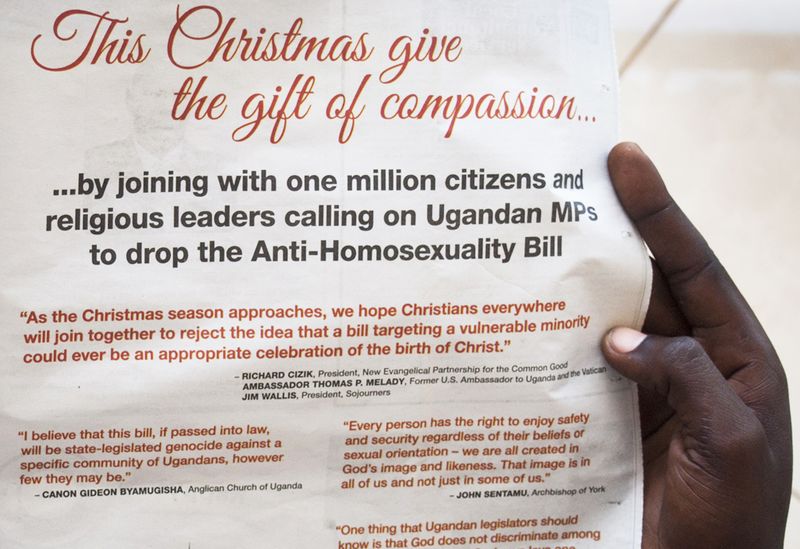 (Photo: On December 11, 2012 a man looks at an ad protesting Uganda's anti-homosexuality bill in the state-owned Ugandan newspaper The New Vision. By Michele Sibiloni/AFP/Getty Images)