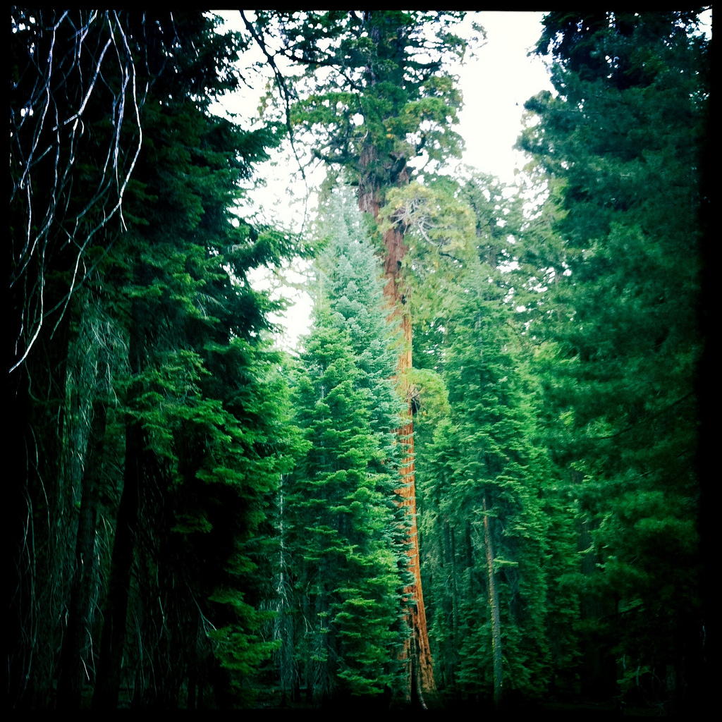 They’re too strong to be knocked over by wind. Their heartwood and bark are infused with tannic acids and other chemicals that protect against fungal rot. Wood-boring beetles hardly faze them. Their thick bark is flame resistant. Ground fires, in fact, are good for sequoia populations, burning away competitors, opening sequoia cones, allowing sequoia seedlings to get started amid the sunlight and nurturing ash. Lightning hurts the big adults but usually doesn’t kill them. So they grow older and bigger across the millennia.