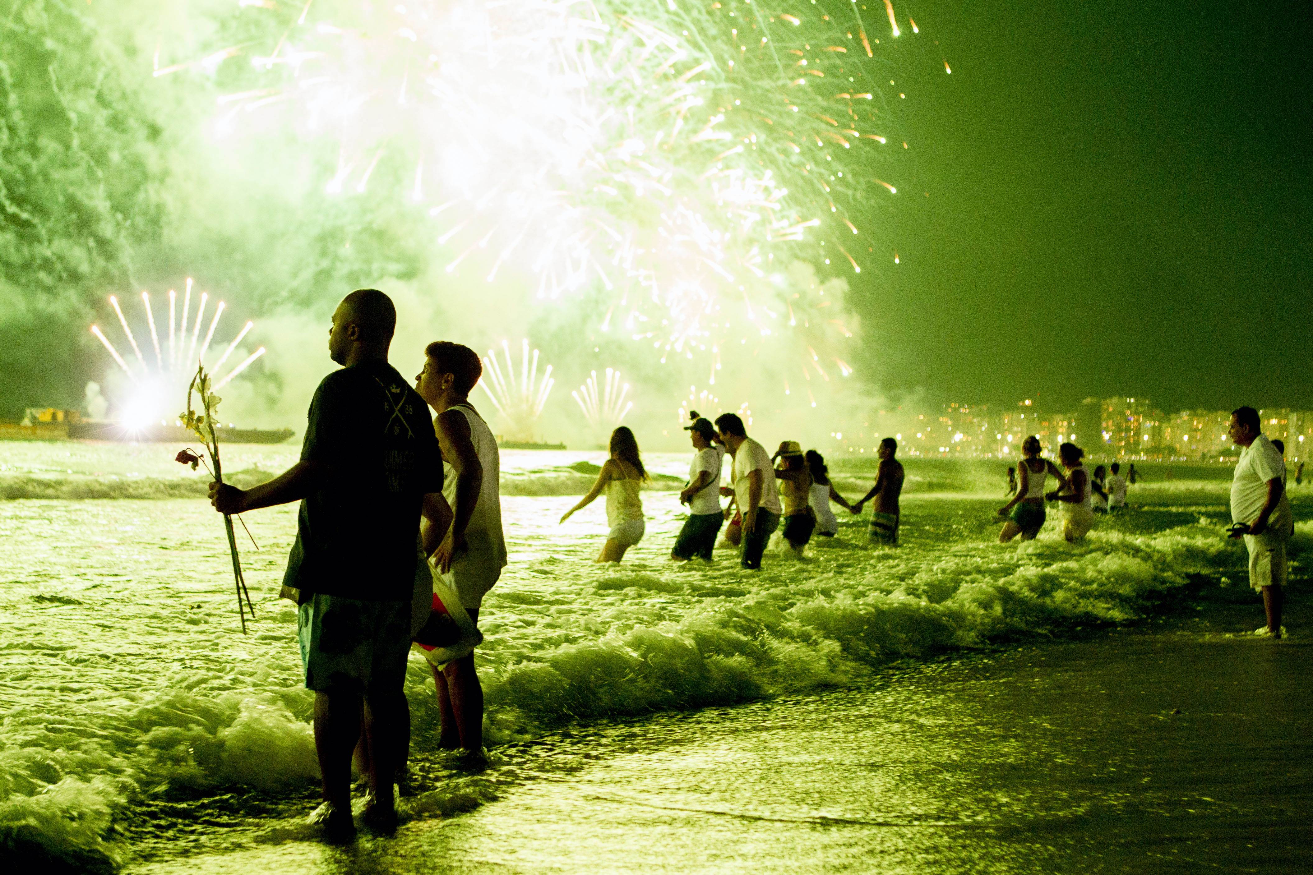 (Photo: People watch fireworks along Copacabana Beach in Rio de Janeiro on January 1, 2013, during celebrations by over three million people attending New Year's Eve festivities. By Ari Versiani/AFP/Getty Images)