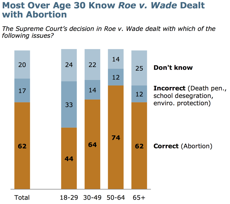 Pew found a majority of Americans under thirty don’t know that Roe v. Wade was about abortion: