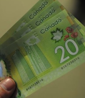 (Photo: A man displays Canadian 20-dollar bills in Washington on January 14, 2013. By Nicholas Kamm/AFP/Getty Images.)