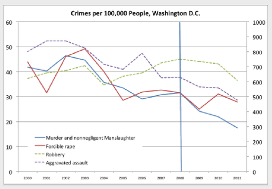 Murders – which may be in Mamet’s mind, the most important thing that guns deter – has seen a resurgence in Chicago this year. But its rate per 100,000 (6.8) in a crime wave is still not that far from Miami/Fort Lauderdale’s (6.1). As for DC, compared with cities in Arizona, Florida and Texas, which Mamet cites, the numbers per 100,000 residents are these: Houston (5.4), Phoenix (4.9), Tampa (4.7), Dallas-Fort Worth (4.5) and DC (4.4). Again, I would reiterate that these are very crude numbers – but they do rebut the claim that cities in Texas, Arizona and Florida “are much safer” than Washington DC or Chicago. Four Three out of the top ten cities for crime are in Florida, Arizona and Texas.
