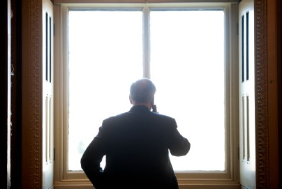 UNITED STATES – FEBRUARY 14: Sen. Lindsey Graham, R-S.C., speaks on the phone in the reception room of the Senate. Graham has said he will vote against ending debate on Hagel’s nomination – thus blocking it. (Photo by Chris Maddaloni/CQ Roll Call)