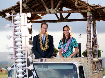 HONIARA, GUADALCANAL ISLAND, SOLOMON ISLANDS – SEPTEMBER 16: Prince William, Duke of Cambridge and Catherine, Duchess of Cambridge travel in a special boat vehicle as they arrive at Honiara International Airport during their Diamond Jubilee tour of the Far East on September 16, 2012 in Honiara, Guadalcanal Island. Prince William, Duke of Cambridge and Catherine, Duchess of Cambridge are on a Diamond Jubilee tour representing the Queen taking in Singapore, Malaysia, the Solomon Islands and Tuvalu. (Photo by Chris Jackson/Getty Images)